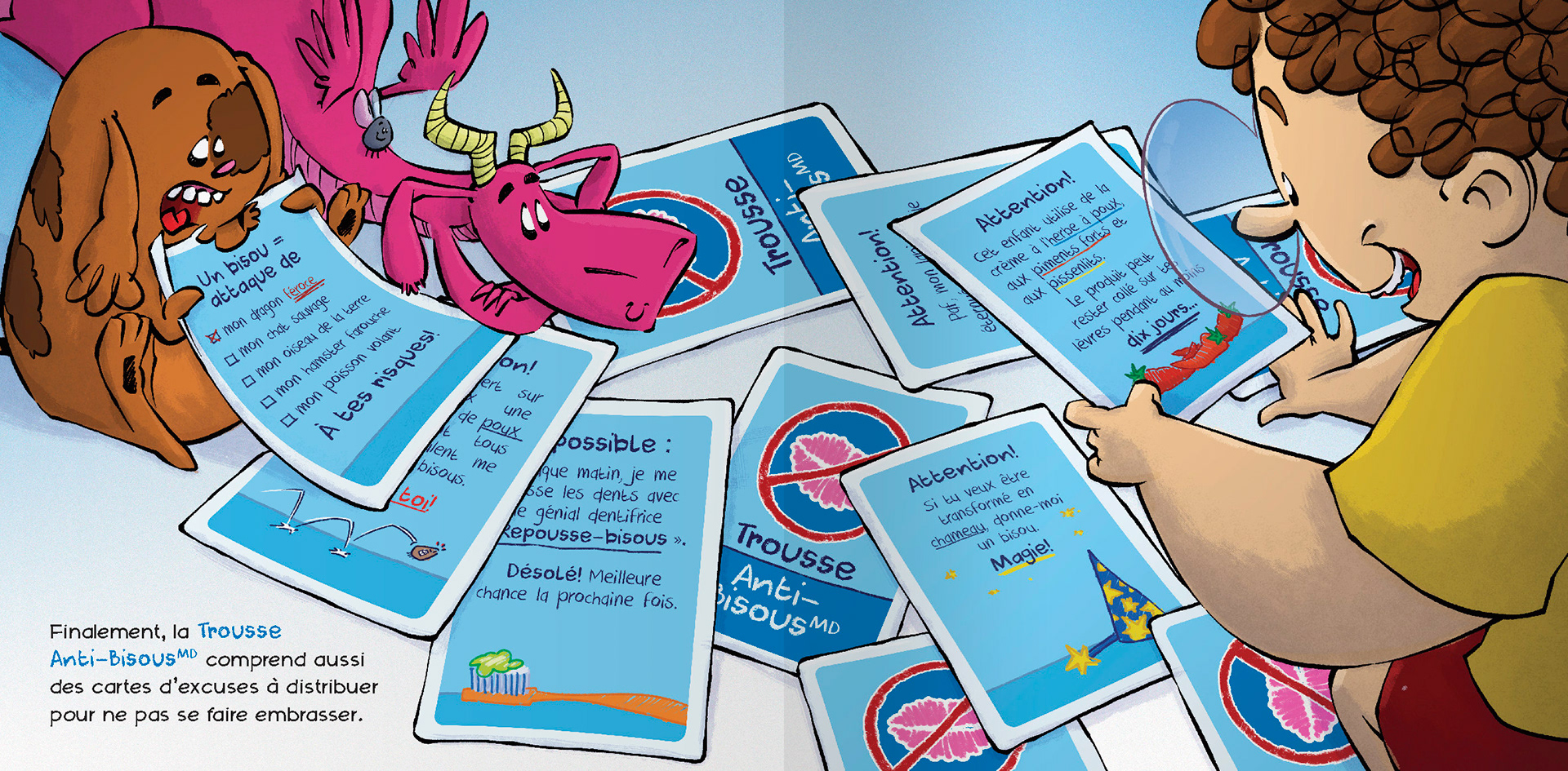 Illustrations et montage graphique du livre La fin des bisous! de Nadine Descheneaux aux Éditions La Smala.